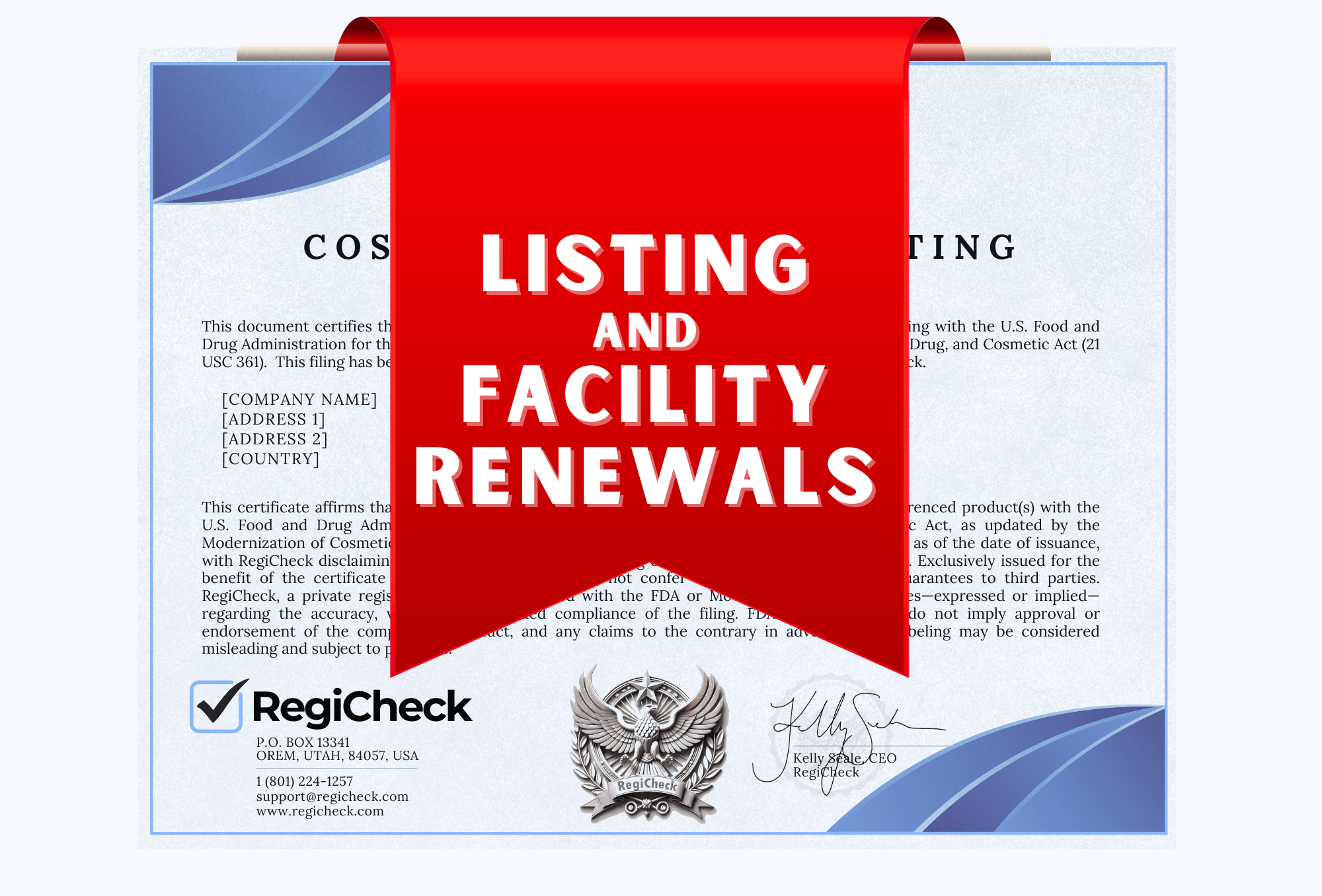 RegiCheck simplifies FDA compliance by handling annual product listing updates and biennial facility renewals. -